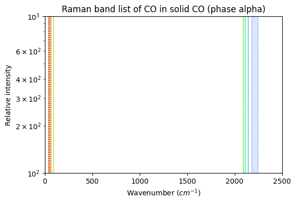 - Schmitt, Bernard and The SSHADE Band List Committee (2021): Raman band list of CO in solid CO (phase alpha). Version 1. SSHADE (OSUG Data Center). Dataset/Band list Data.https://doi.org/10.26302/SSHADE/BANDLIST_RAMAN_CO_ALPHA-CO