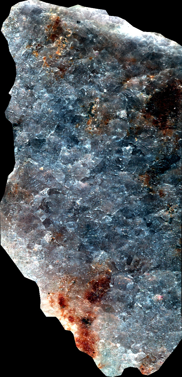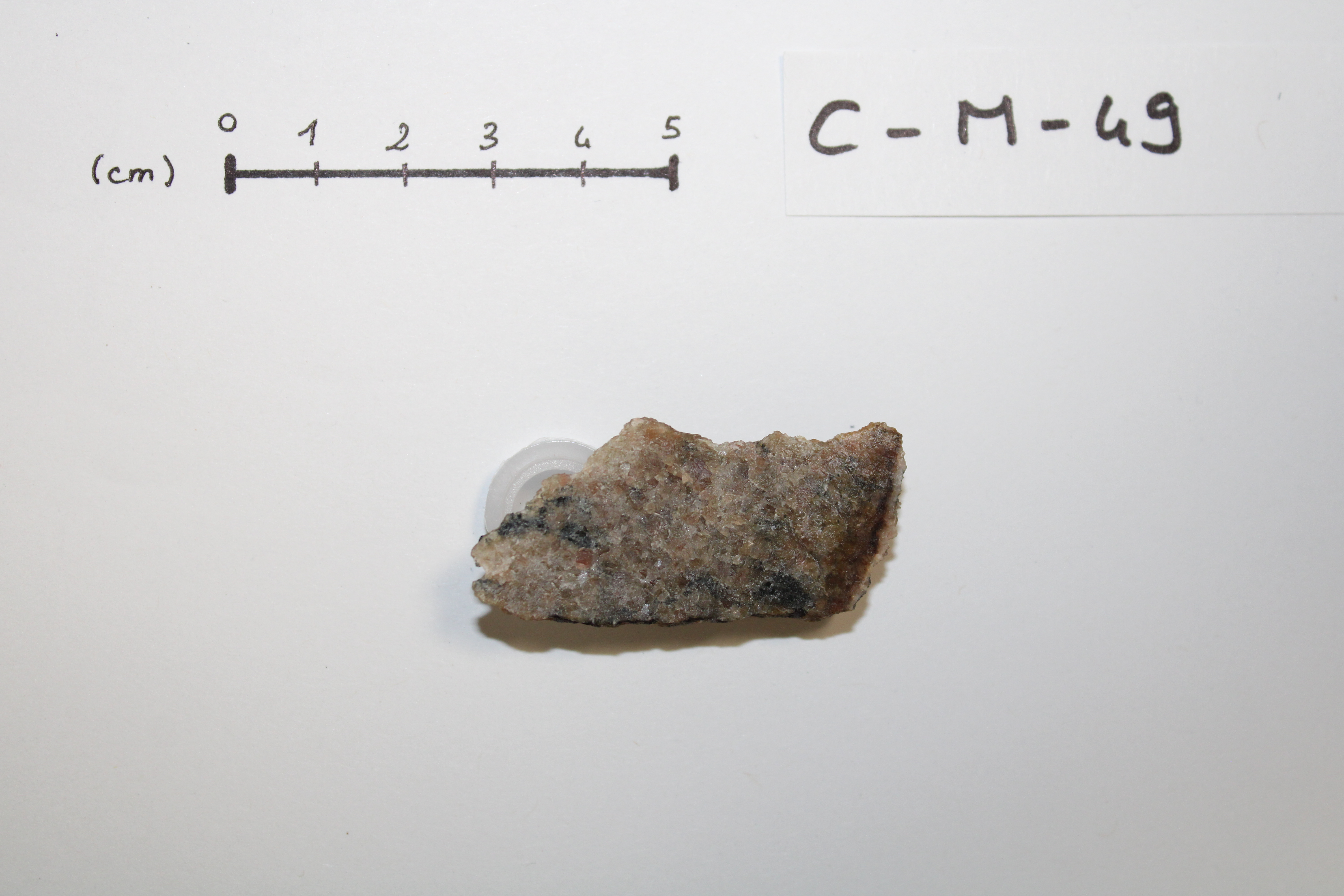 - CM49 sample cut in the form of a sugar. This plutonic rock is mainly composed of plagioclase, pyroxene and amphibole (origin : Grenville Province, CANADA).