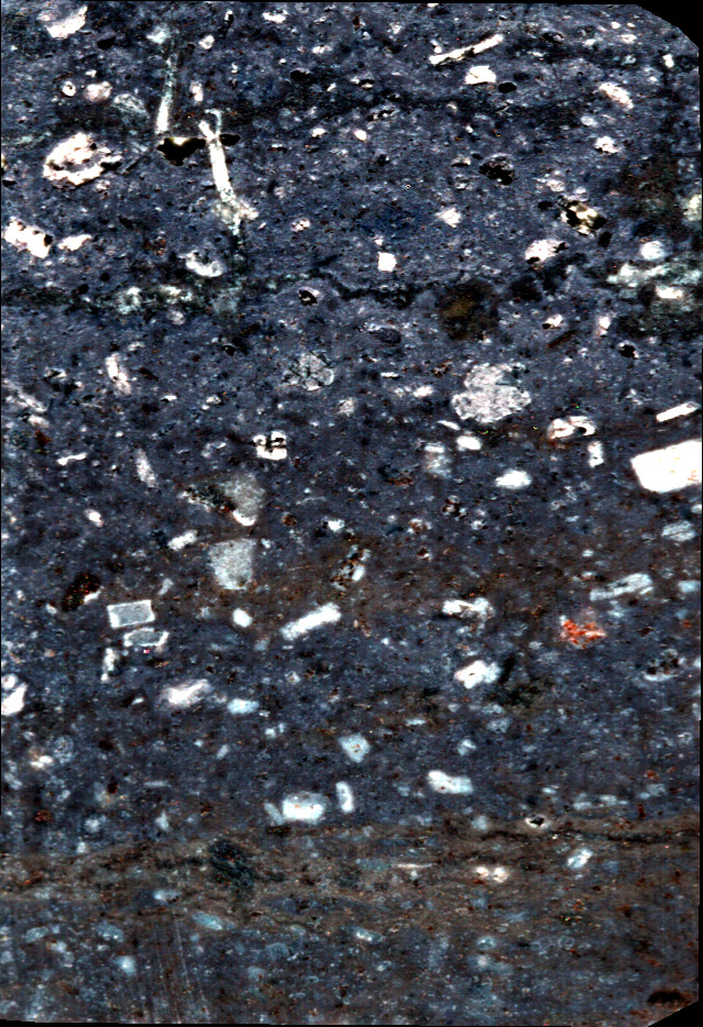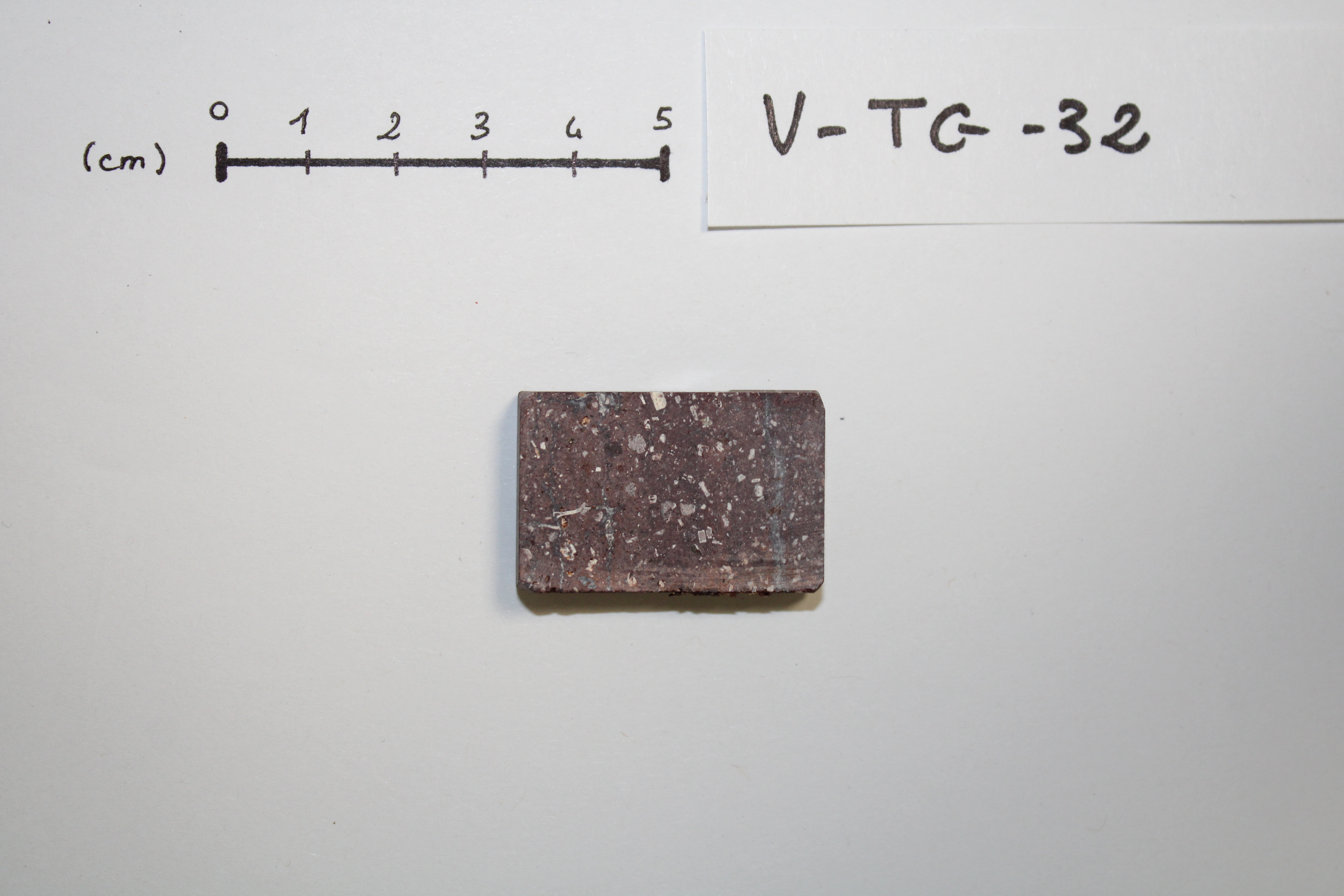 - VTG32 sample cut in the form of a sugar. This volcanic rock is mainly composed of plagioclase, biotite and K-feldspars (origin : Vosges, FRANCE).